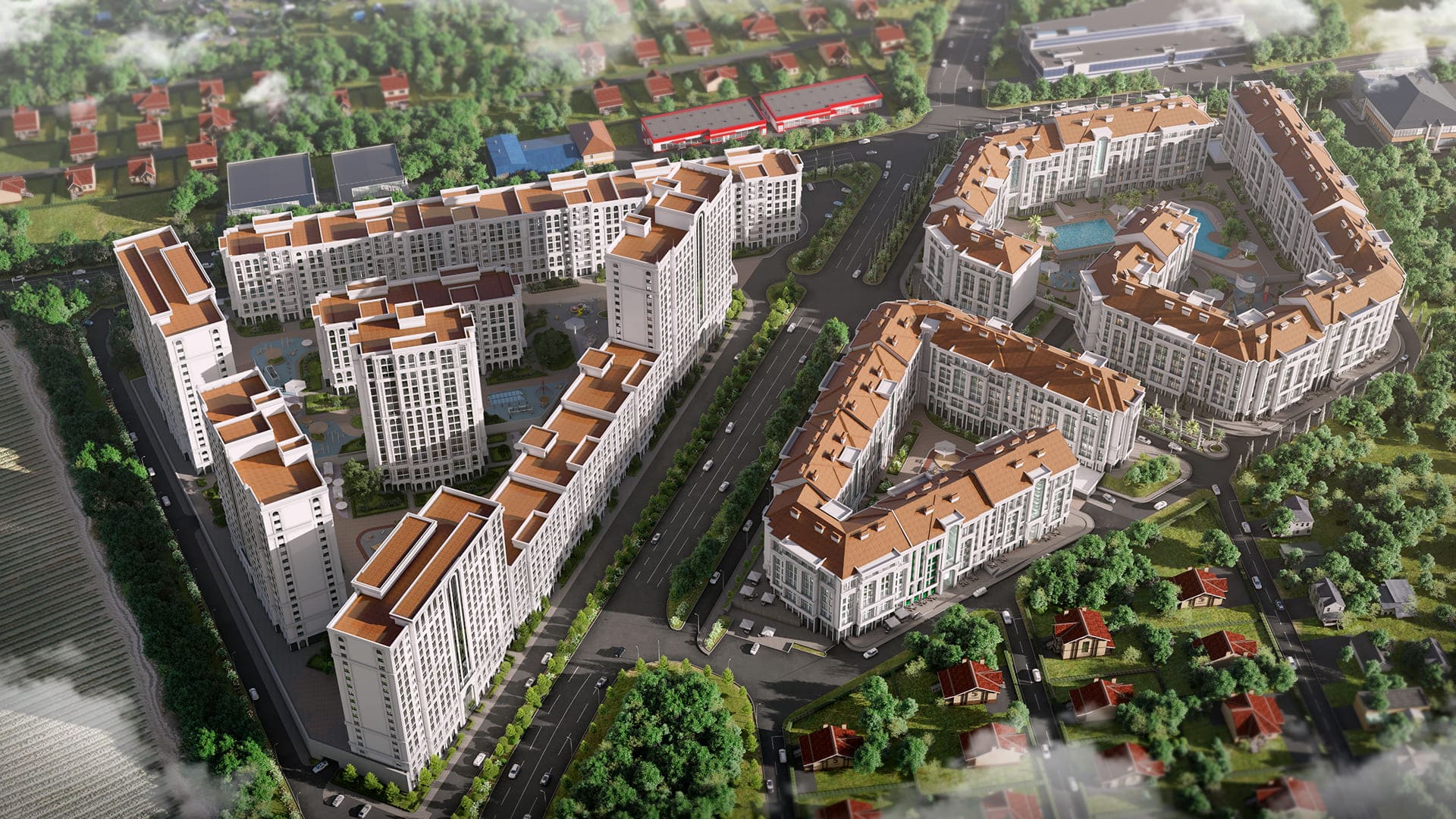 Детский сад и школа на 1750 мест, большие бассейны и прогулочные аллеи